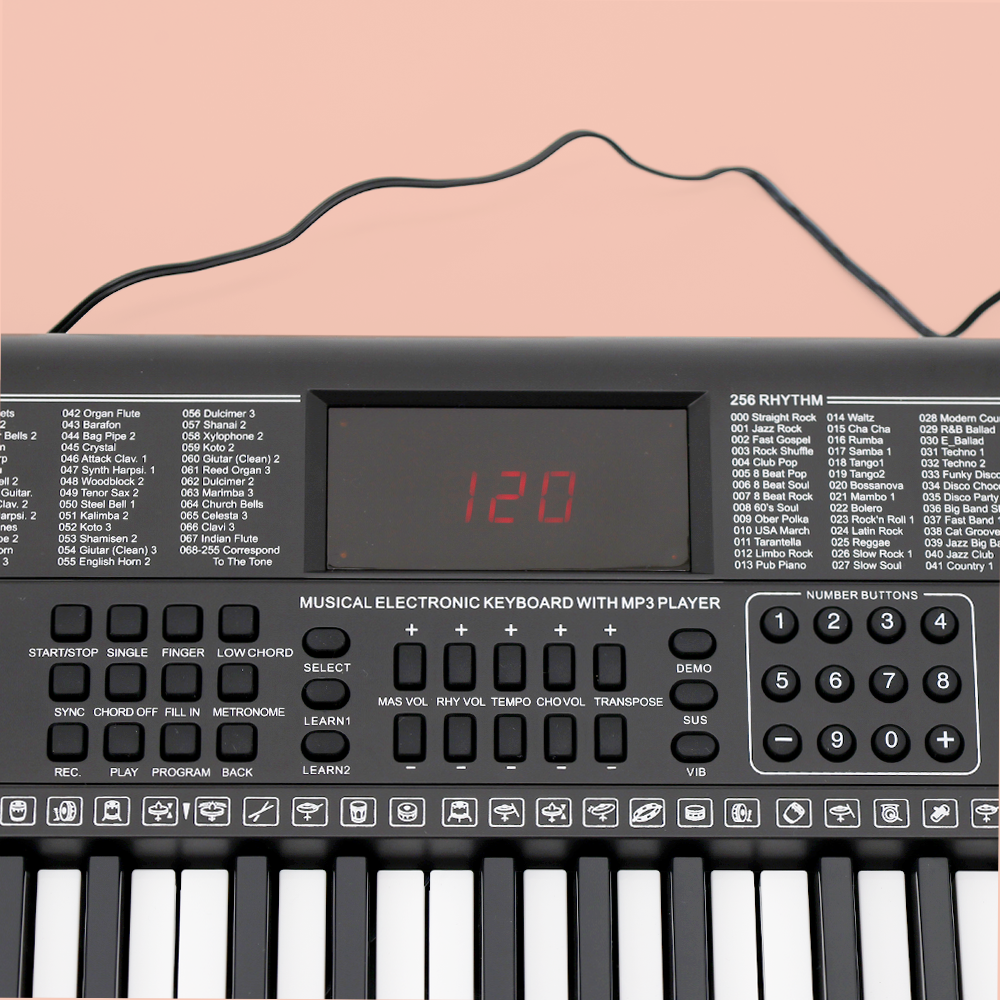 A modern and sleek design equipped with an LCD display ensures you have full control over your music. Choose from multiple sound effects, set metronome timings, or even record and playback your compositions