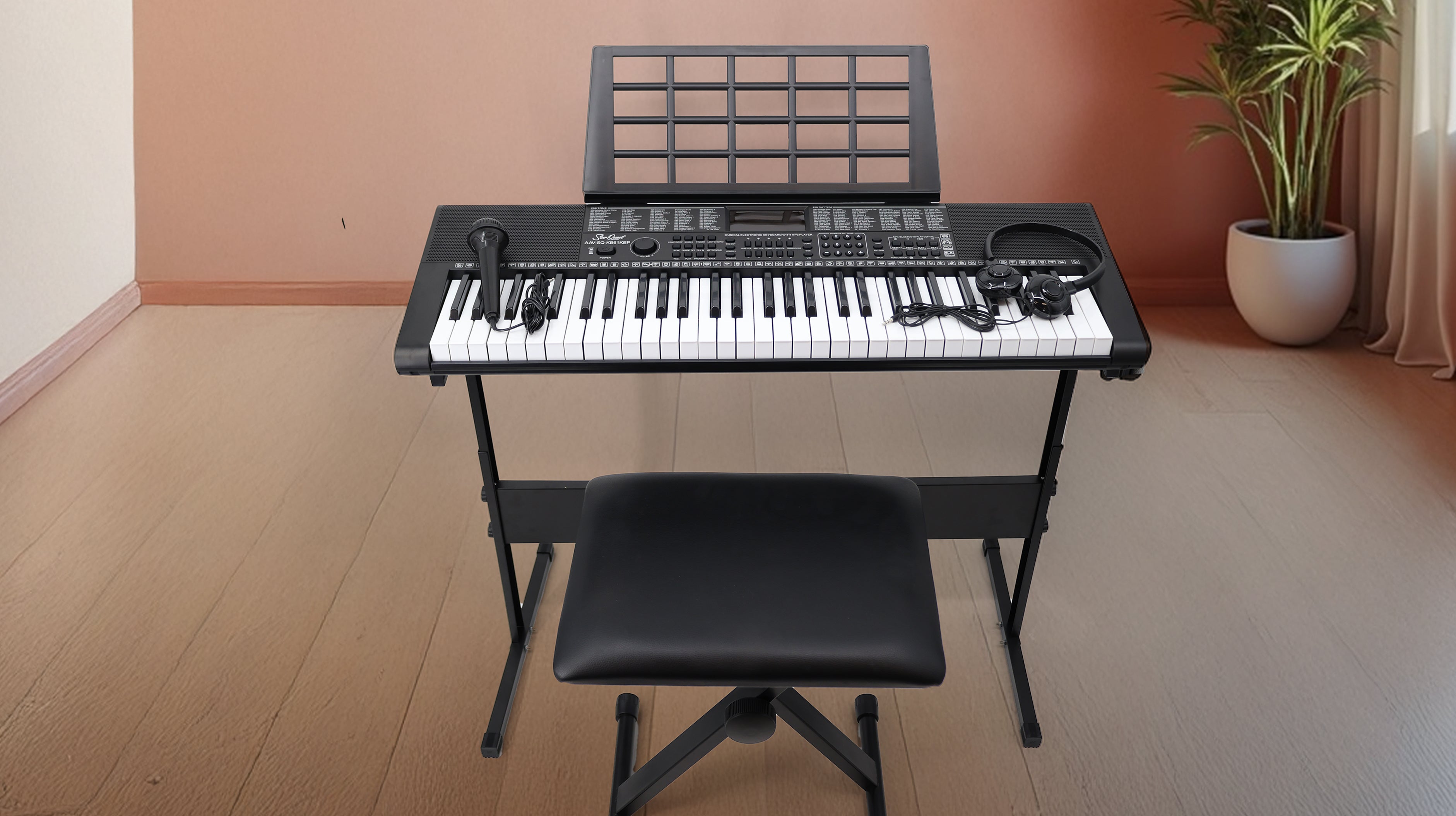 StarQuest 61 Key Portable Electronic Keyboard Piano Kit – Digital Piano for Beginners and Experienced Musicians, With Stand, Bench, Headphones, & Microphone