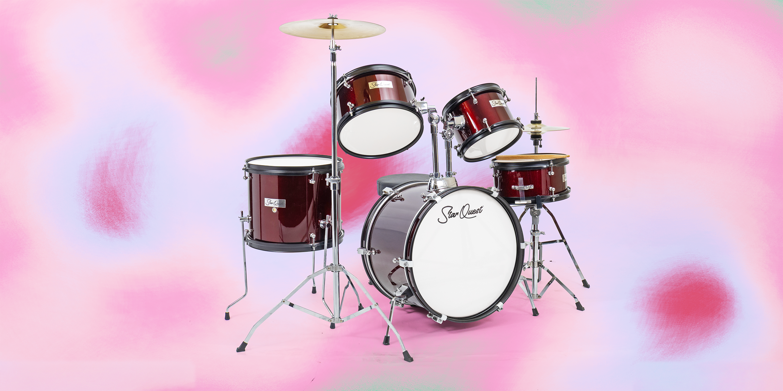 Features a snare, bass drum, 2 mounted toms, floor tom, Hi hat cymbals and a crash cymbal, providing a comprehensive percussion foundation to kick-start your musical journey